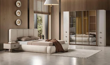 Bianco Bazalı Yatak Odası - Mobilya Kapaklı